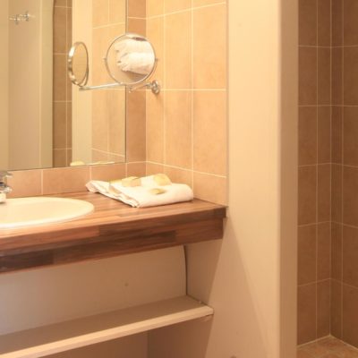 Room with twin or double bed, sofa bed for one person, bath or shower